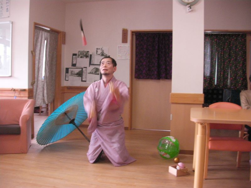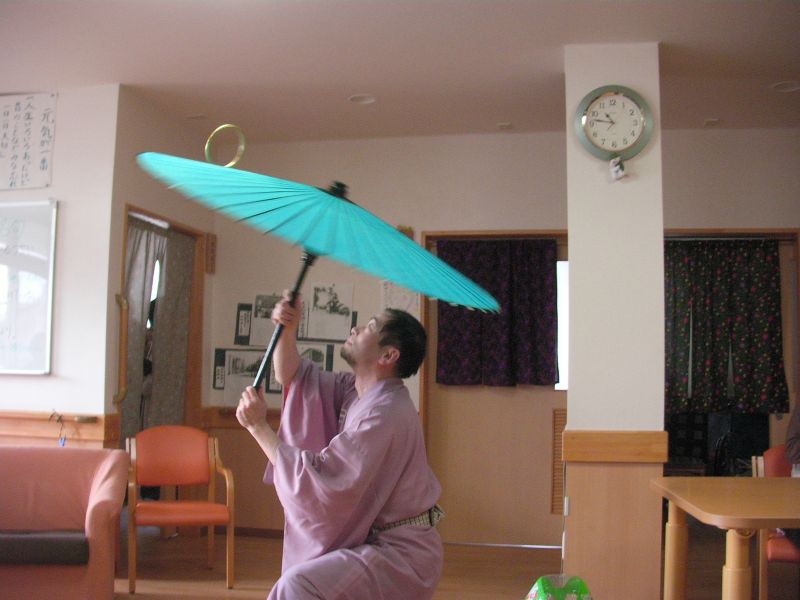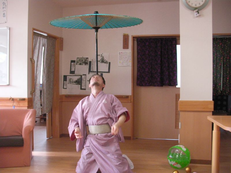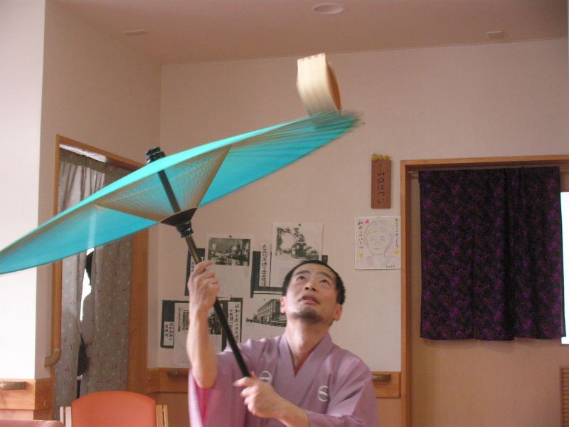 最後はめでたく傘回しで終了。その他、徳利と猪口を投げたり、