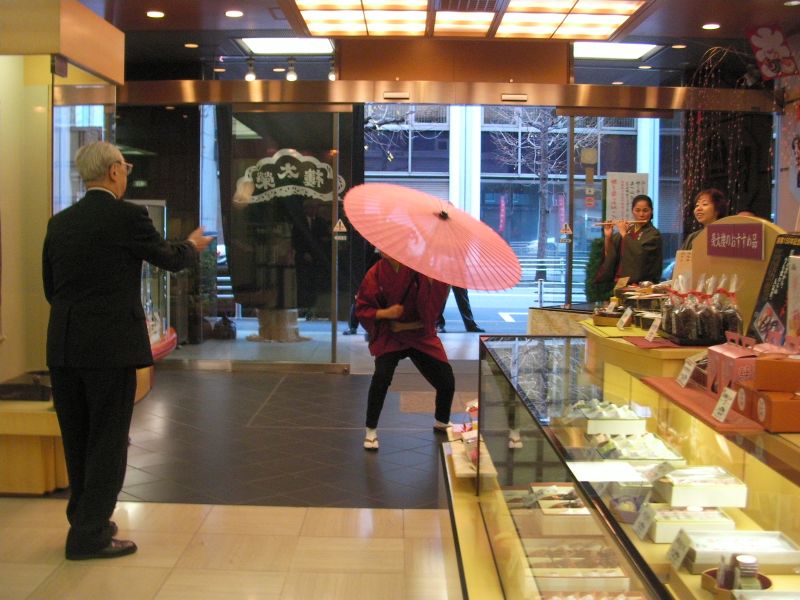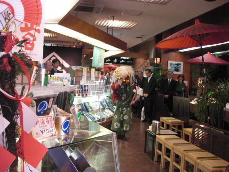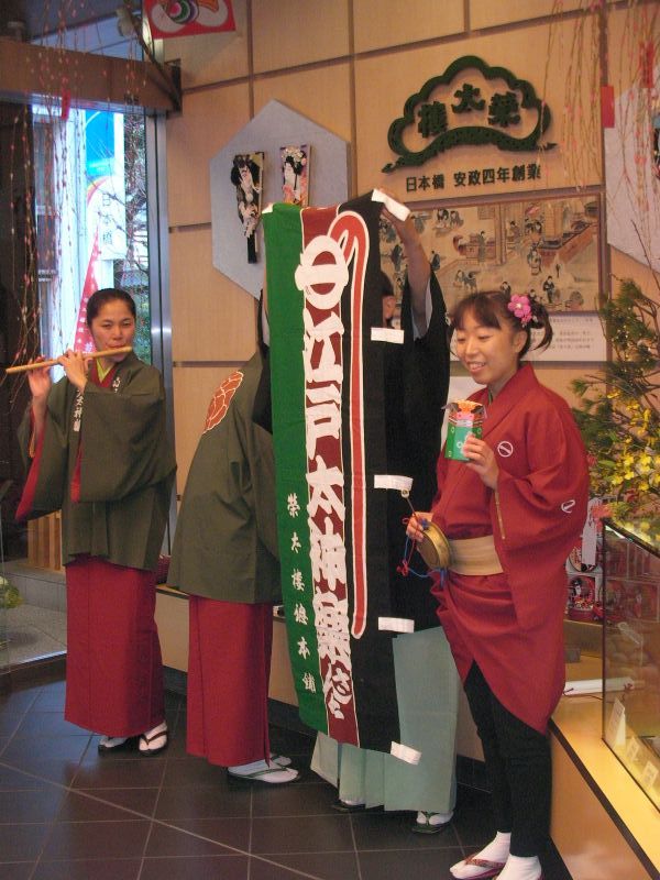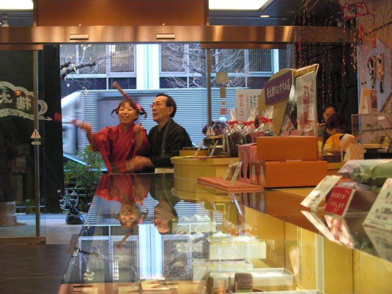 とらやの店内でも門付け。