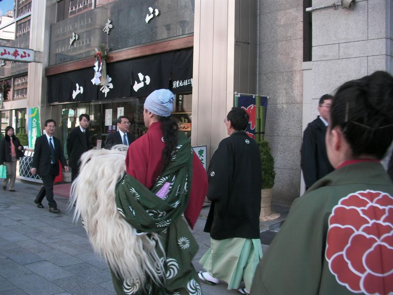 歴史的経緯から社中の門付けは日本橋界隈だけとはいうもののかなりの距離を歩いた。