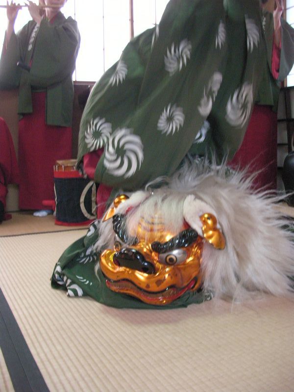 民家にお邪魔して奥座敷での獅子舞。
