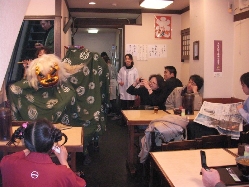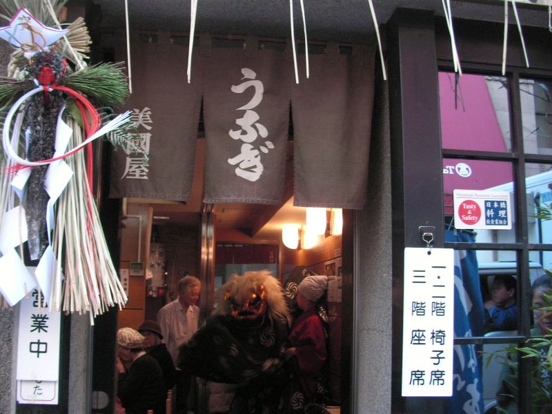 鰻屋でも獅子舞!