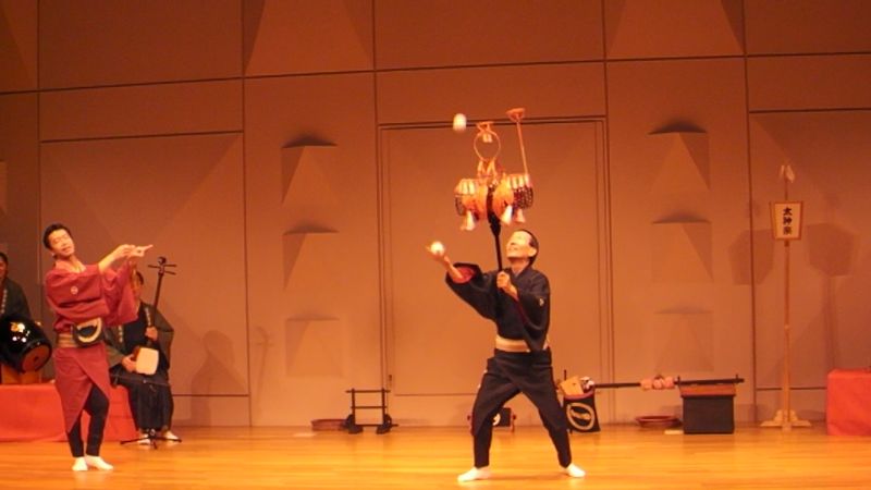 曲芸最後は親方による花籠鞠の曲、これおめでたくていいですよねー。