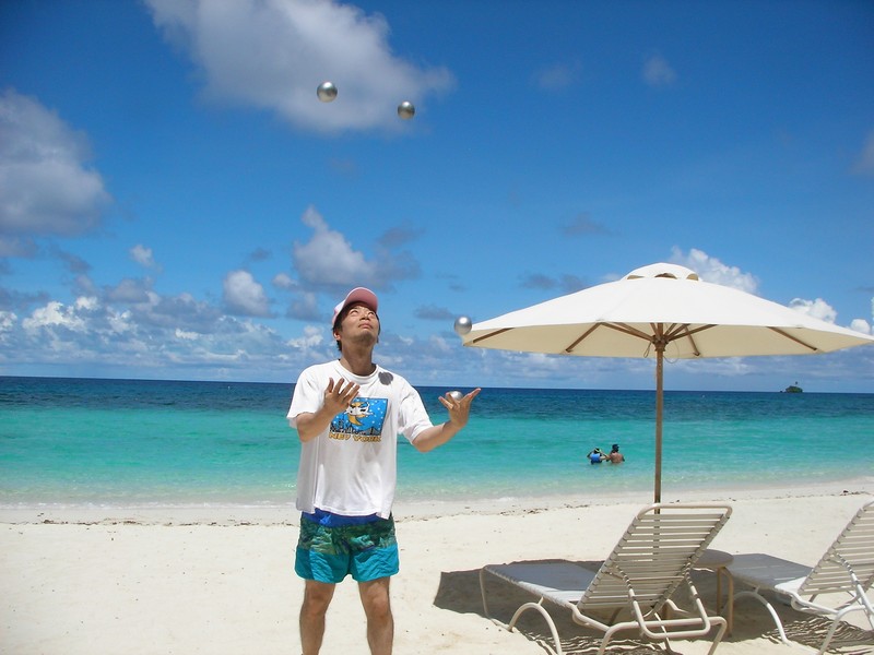 ジャグリングを始めたのは2004年。ボールと傘を中心に投げたりまわしたりしてます。2005年1月にクラブを始めましたが、いまだに3クラブカスケードしかできません。花籠鞠、一つ鞠も始めましたが、まだ基本パターンもできません。