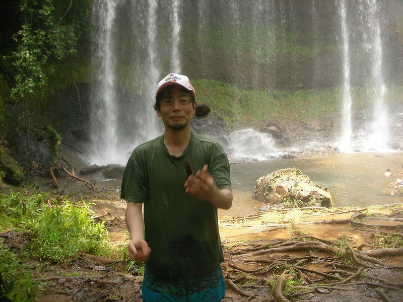 山の中を歩くこと40分、途中で川遊びなどして滝に到着。