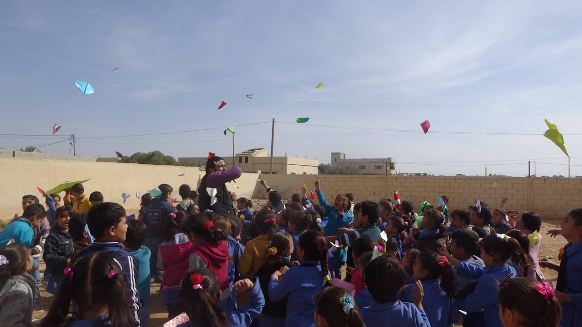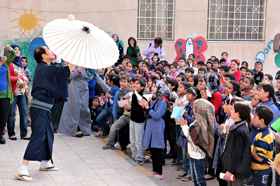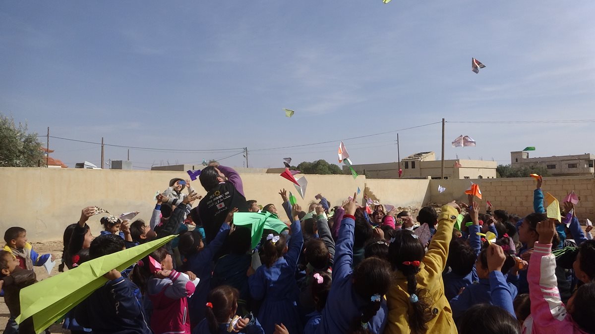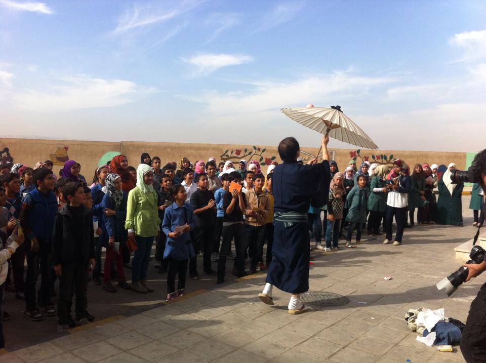 校庭で現地スタッフによる現地語でのスピーチがあり、漫然と聞いていた、もちろんアラビア語がわかるわけではない。そしたら突然通訳をしている日本人スタッフから「なんかやってください」