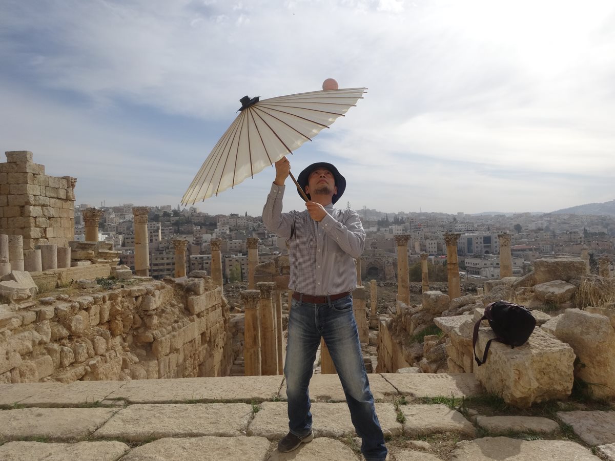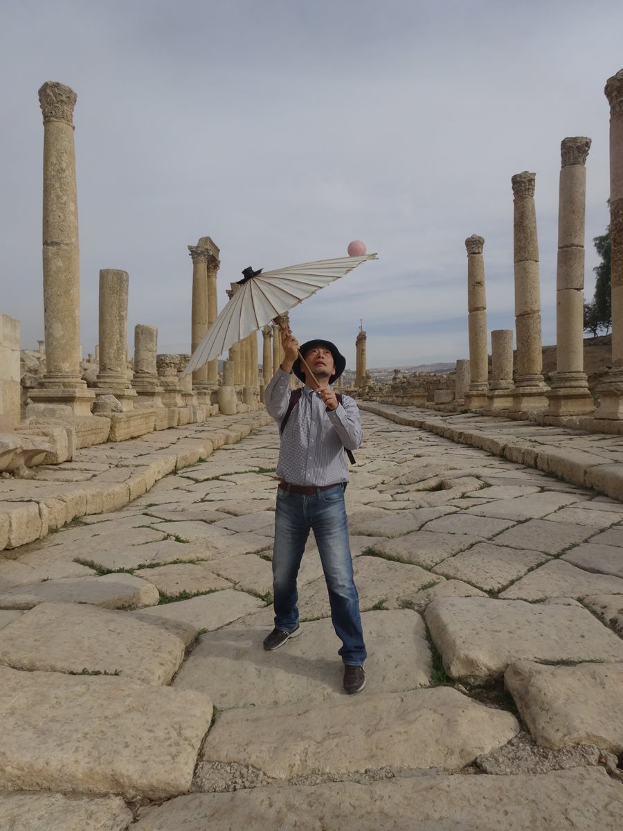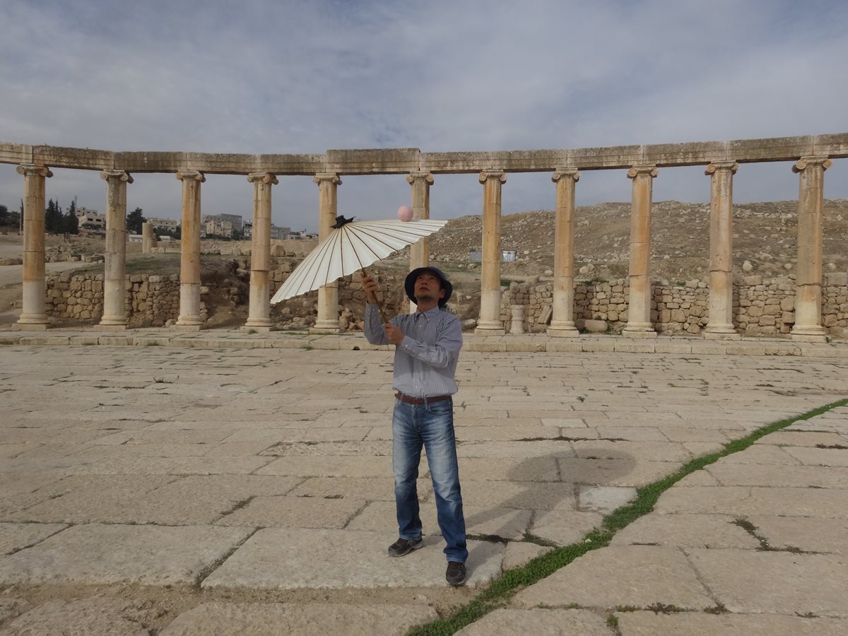 広場の真ん中で傘をまわすのもいいものです。