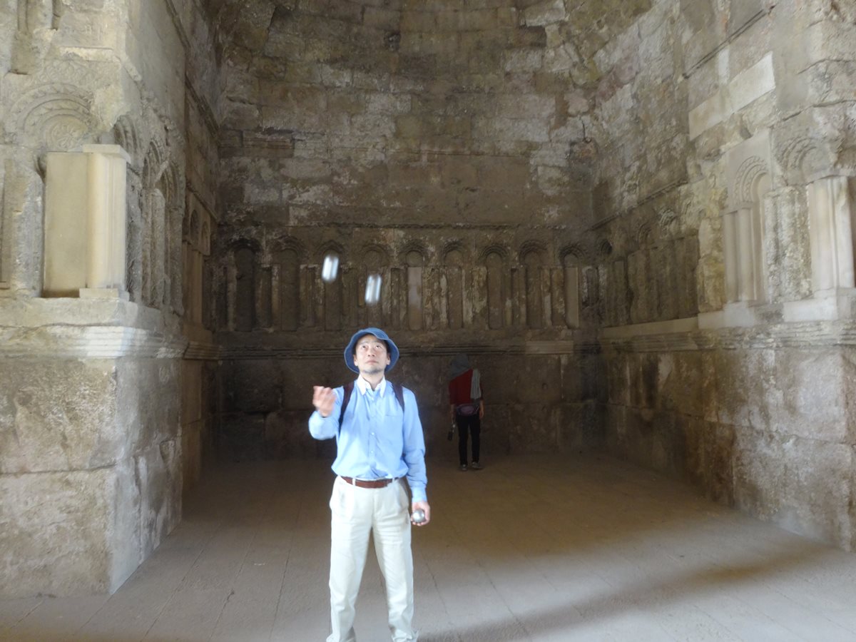 神殿の中で投げてみました。