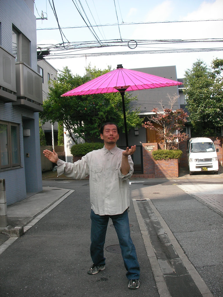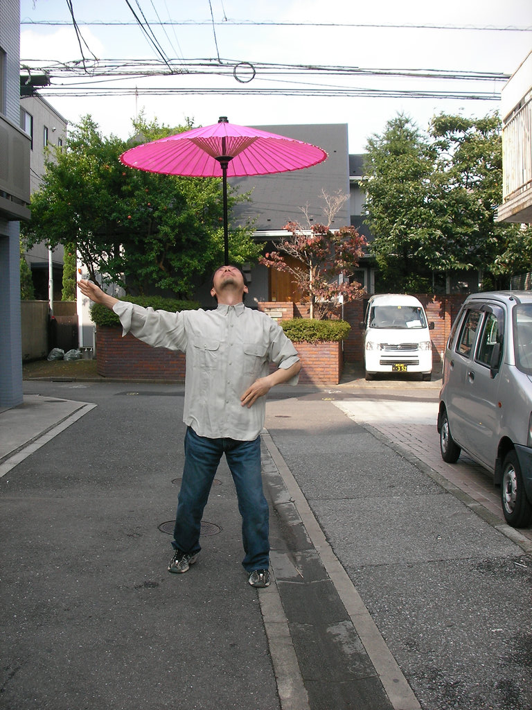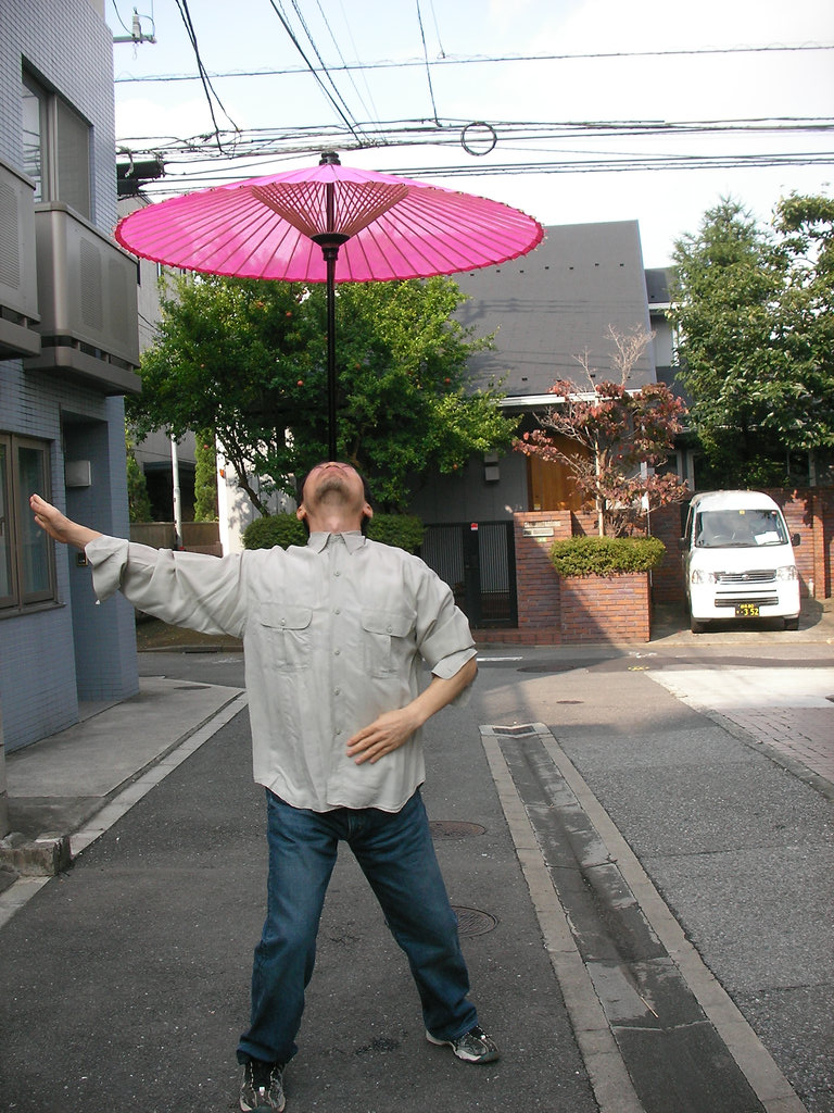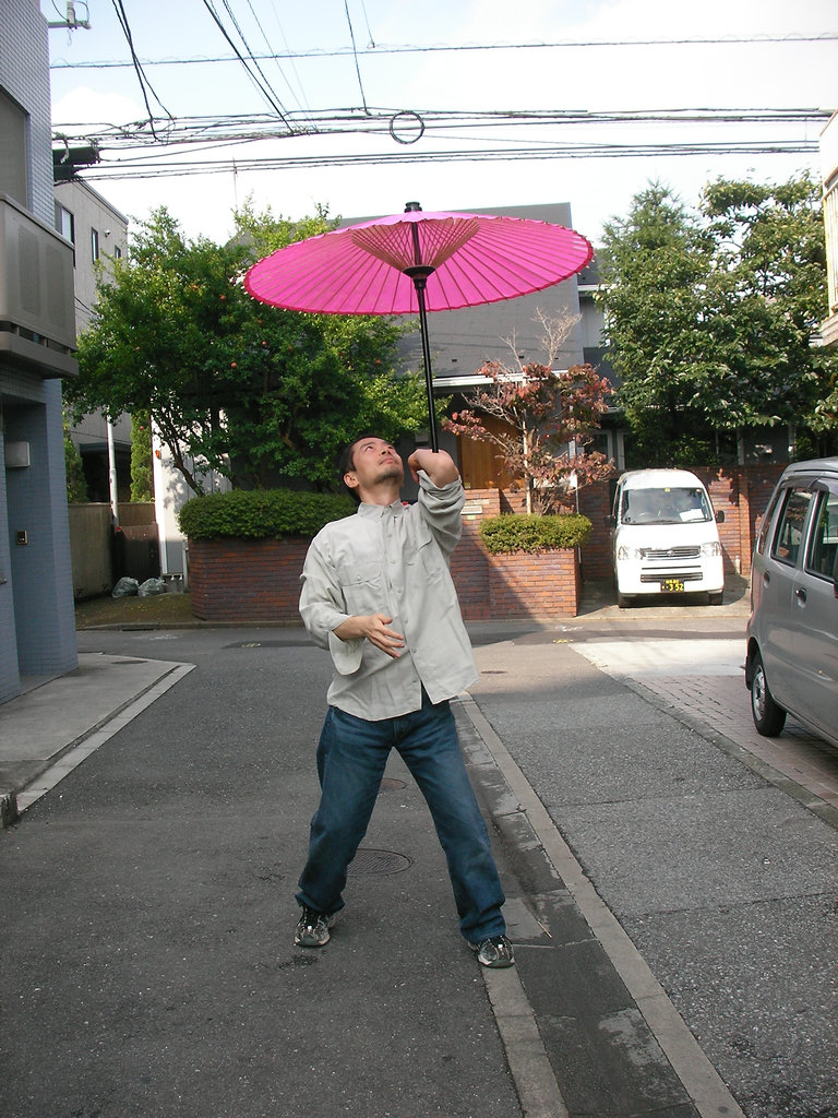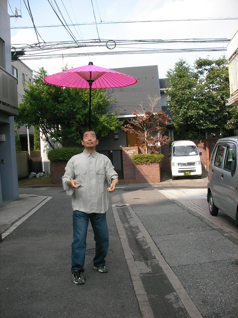 広い場所でやる傘回しは牧歌的とも言えるリラックス加減。