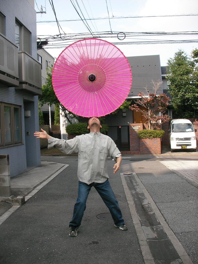 いつ抜けるかと気が気ではない。傘回しをやってみたいという方