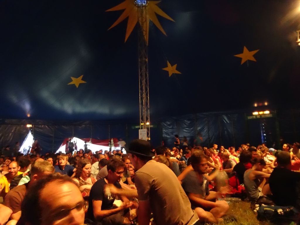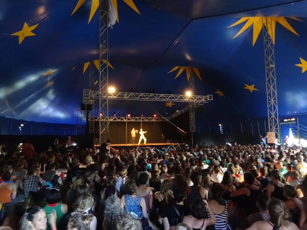 このテントはガラショーテントなどとは違って椅子席がなくすべて芝生の上に座るのです。