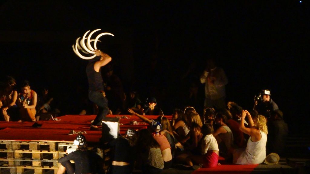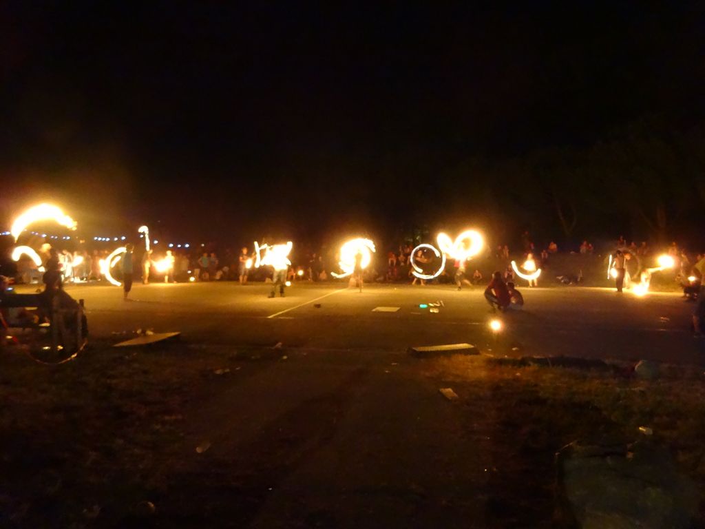2時近くだけれど外ではまだまだ火を回しているのです。