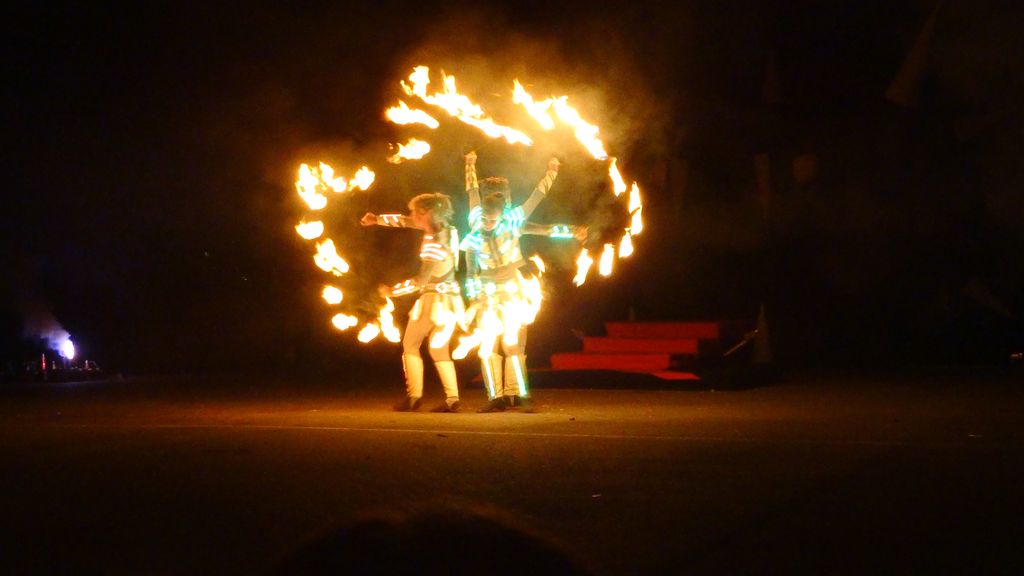 夜はおまちかねのファイヤーガラ!1時間前から最前列に座りこんで待つ!