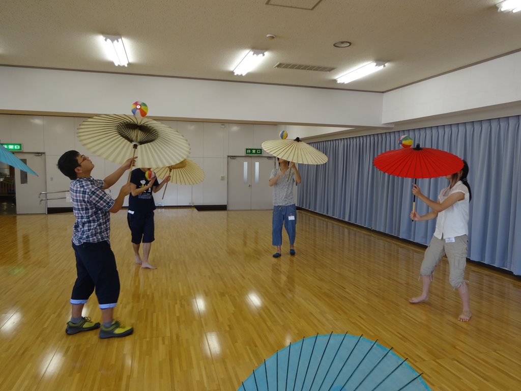 開会式の後はまずは傘回しのワークショップ。