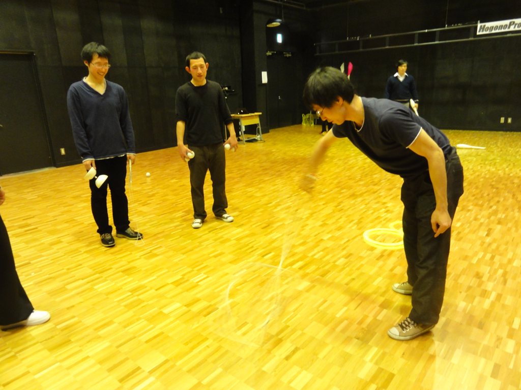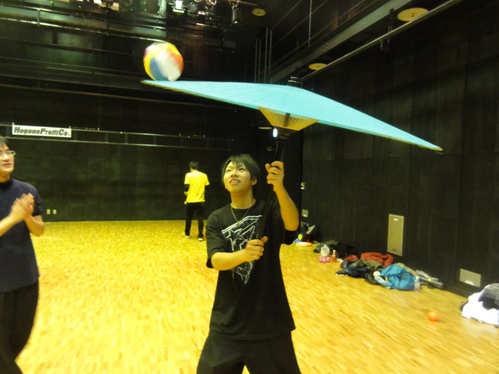 私は傘回しとトリックロープを教え、コンタクトの練習法を