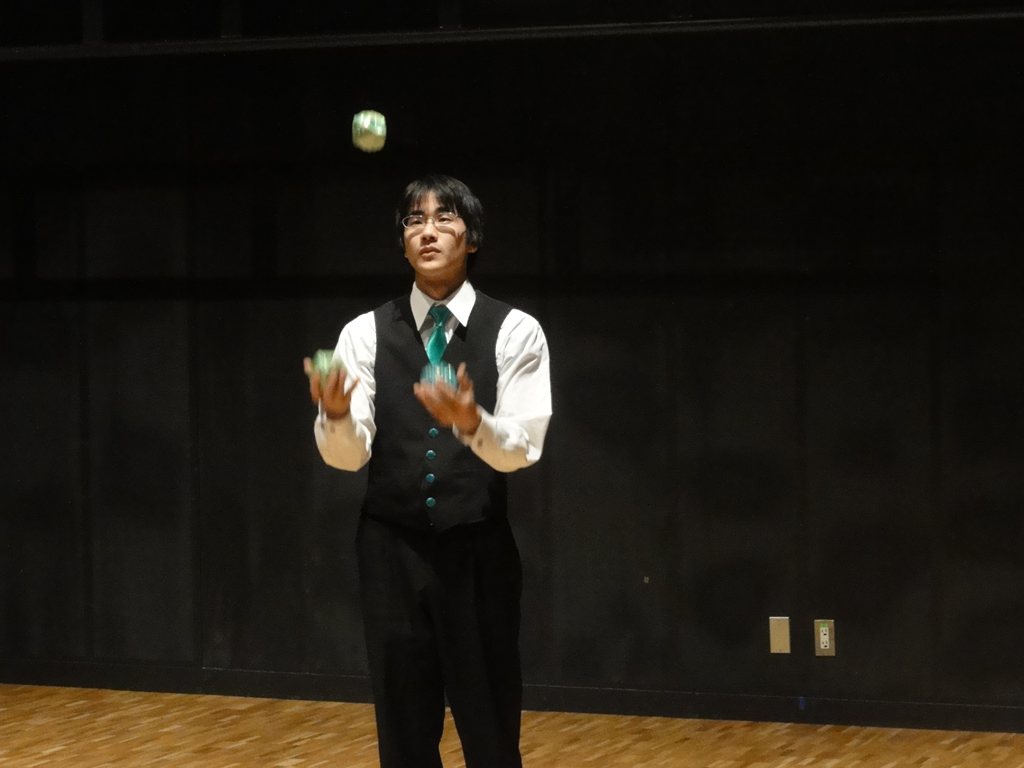 開口一番のあつしさんは、デビル、ボール、クラブによるジャグリング。