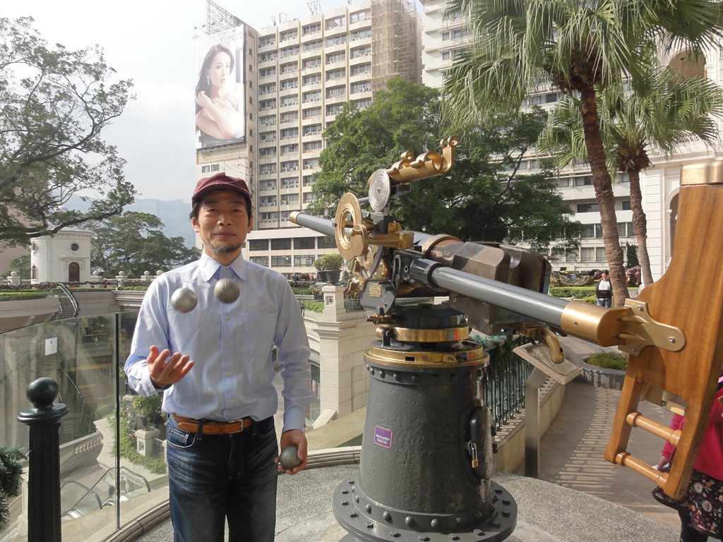 ジャグリングを始めたのは2004年。ボールと傘を中心に投げたりまわしたりしてます。2005年1月にクラブを始めましたが、いまだに3クラブカスケードしかできません。花籠鞠、一つ鞠も始めましたが、まだ基本パターンもできません。
