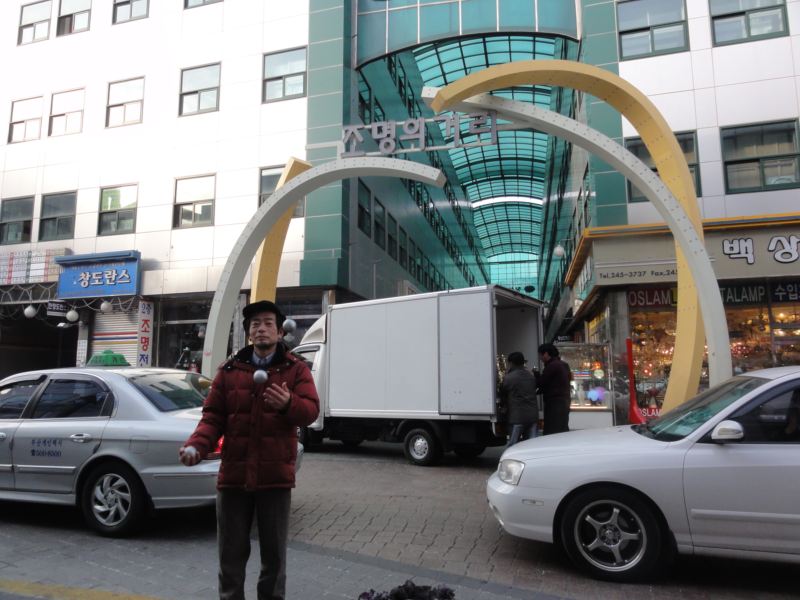 まずは釜山市中央の国際市場入り口でぱちり。