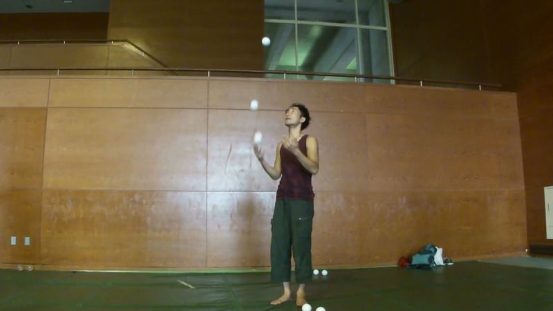 ジャグリングを始めたのは2004年。ボールと傘を中心に投げたりまわしたりしてます。2005年1月にクラブを始めましたが、いまだに3クラブカスケードしかできません。花籠鞠、一つ鞠も始めましたが、まだ基本パターンもできません。