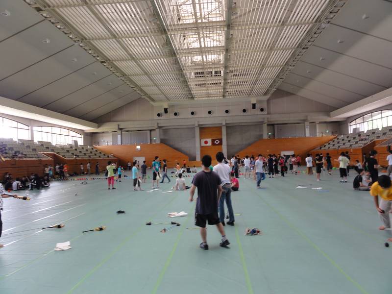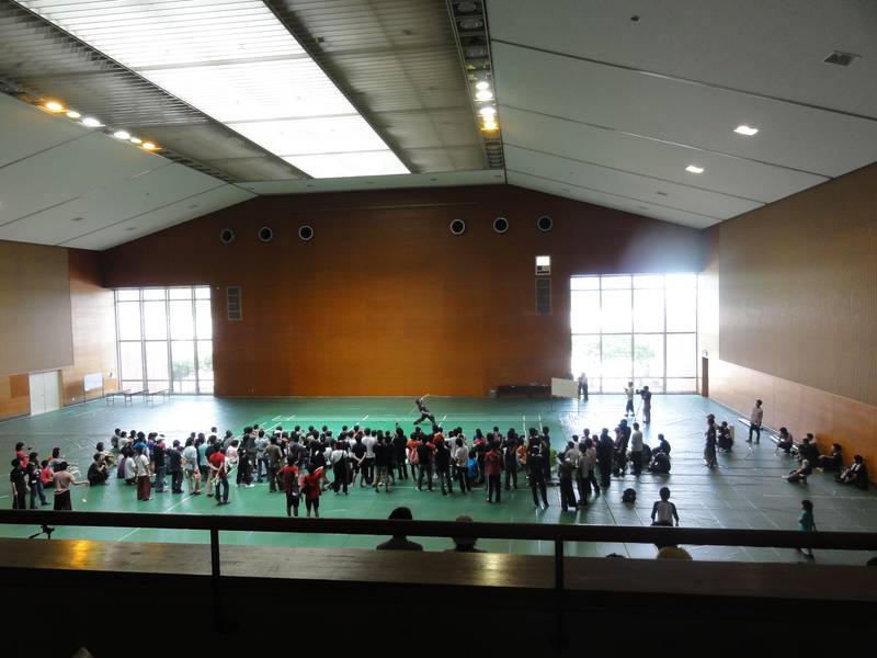体育館では今年のチャンピオンの周りに人の輪ができて、優勝の技を堪能。