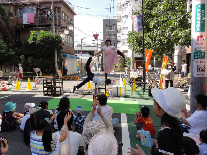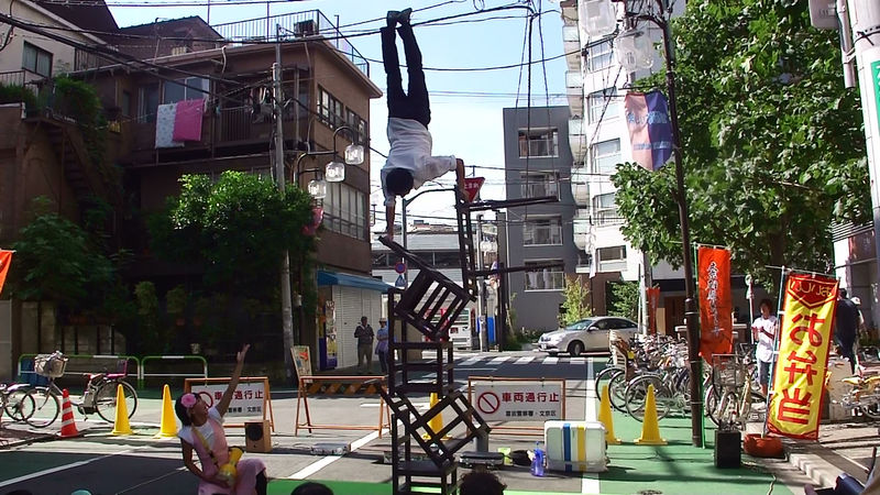 ハンドトゥハンド、ビッグバルーン、椅子積み曲芸で30分。