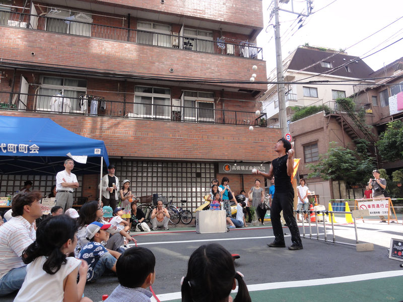 ディアボロ、コンタクトでウォームアップして、クラブ3・5 、チョップでオトピタっていいですねえ。ステージ後方から見てると子供たちの視線が吸い寄せられていくのがわかって興味深い。