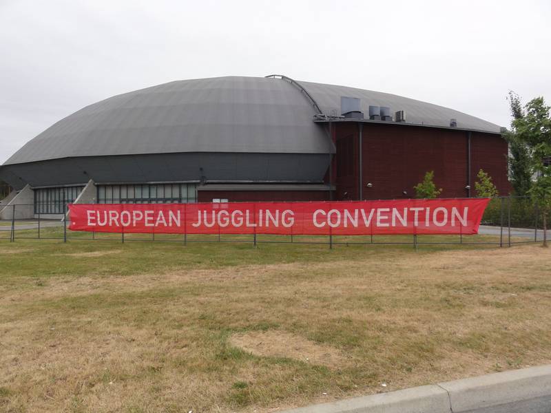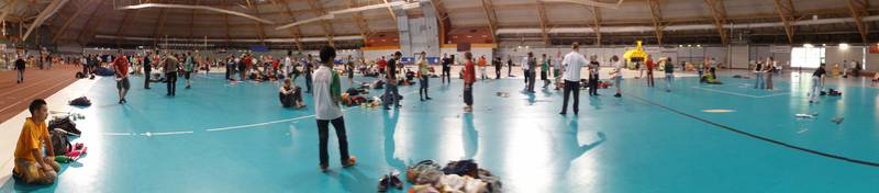 会場はEJC2008のドイツと比べるとかなりこじんまり。体育館の中に練習スペースと