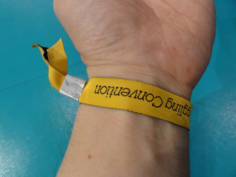 手にEJC2010の参加証バンドを巻いて金具をがちゃん。一週間これをはめっぱなしにするのね。