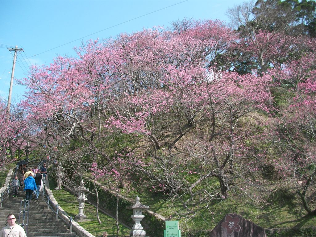 オリオンビール工場の向かいには、名護城趾にて桜祭り、もう桜が