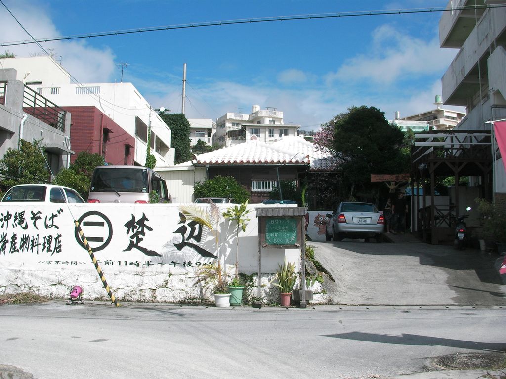 昼食はソーキソバ、満員で待たねばならなかったので店頭の駐車場でじゃぐる。