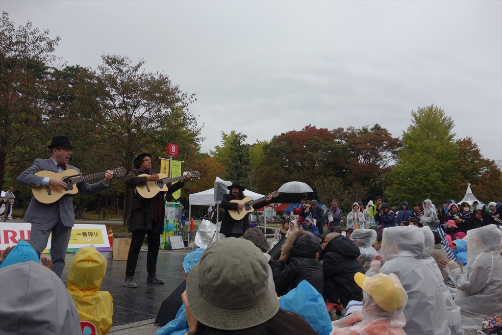 楽器が濡れるのにも関わらず熱演、客も大盛り上がりでしたよ