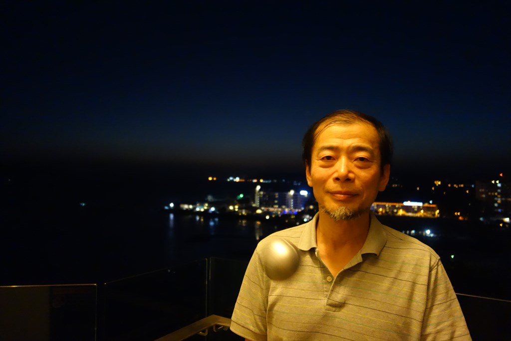 夜景を前に記念撮影。