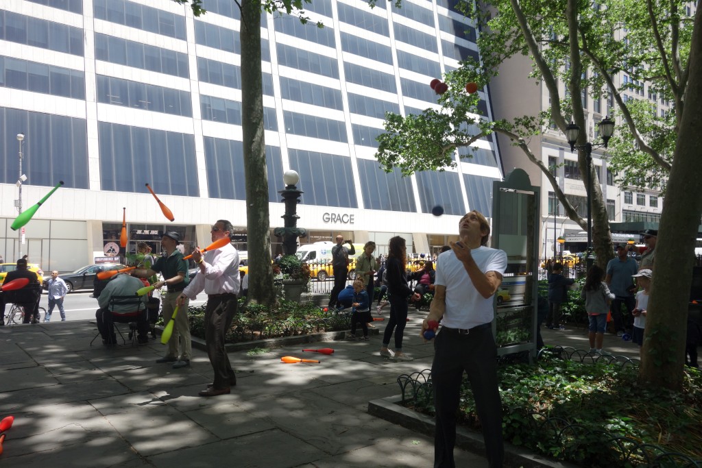 次はコミカルなバウンズジャグリング。