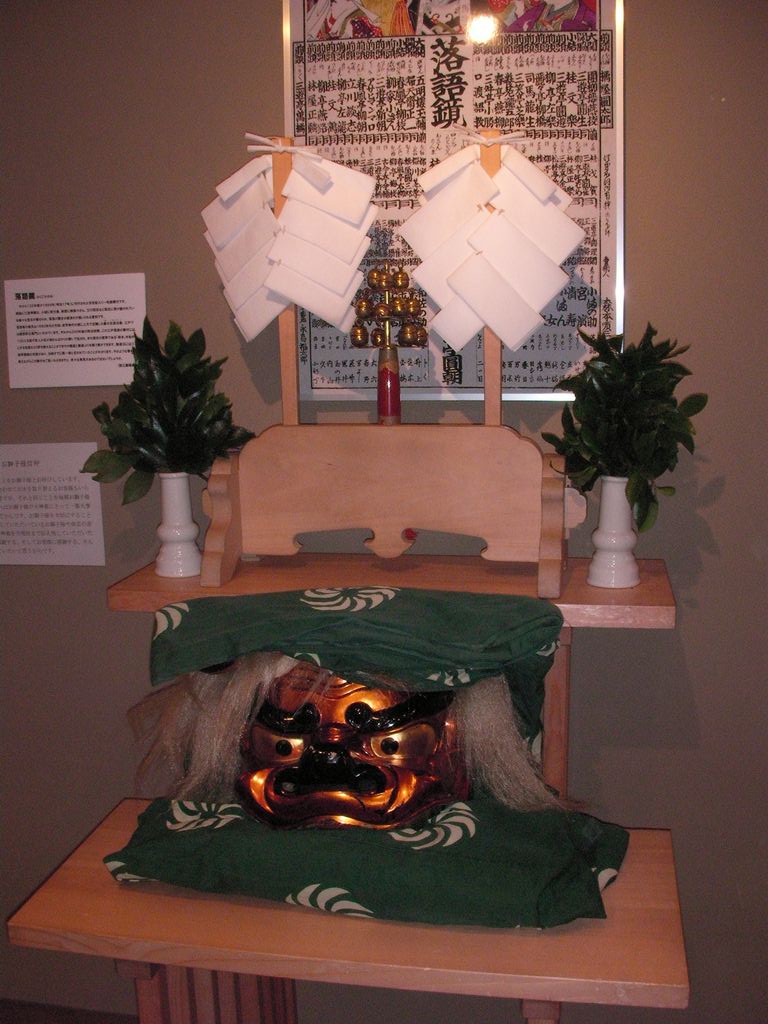 客席では私がかなり若いほうになるでしょう。劇場ロビーには獅子頭と曲