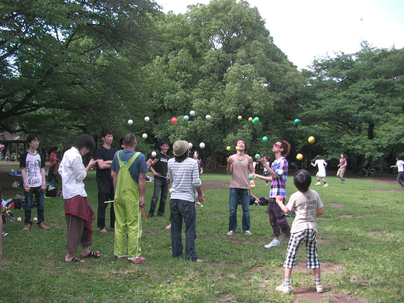 ジャグリングを始めたのは2004年。ボールと傘を中心に投げたりまわしたりしてます。2005年1月にクラブを始めましたが、いまだに3クラブカスケードしかできません。花籠鞠、一つ鞠も始めましたが、まだ基本パターンもできません。