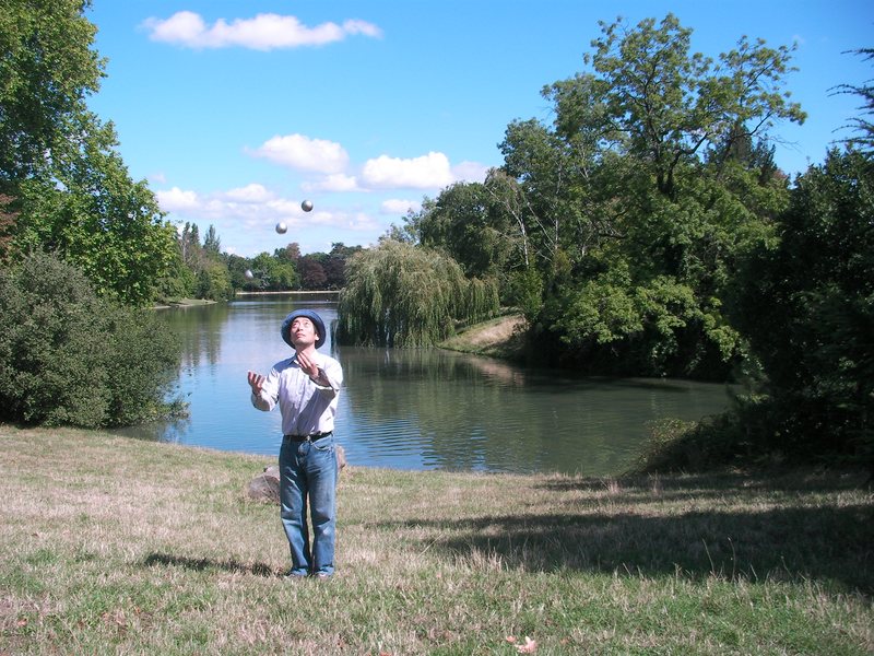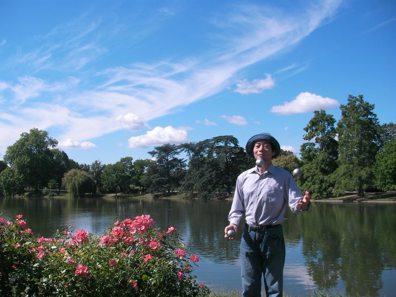 ジャグリングを始めたのは2004年。ボールと傘を中心に投げたりまわしたりしてます。2005年1月にクラブを始めましたが、いまだに3クラブカスケードしかできません。花籠鞠、一つ鞠も始めましたが、まだ基本パターンもできません。
