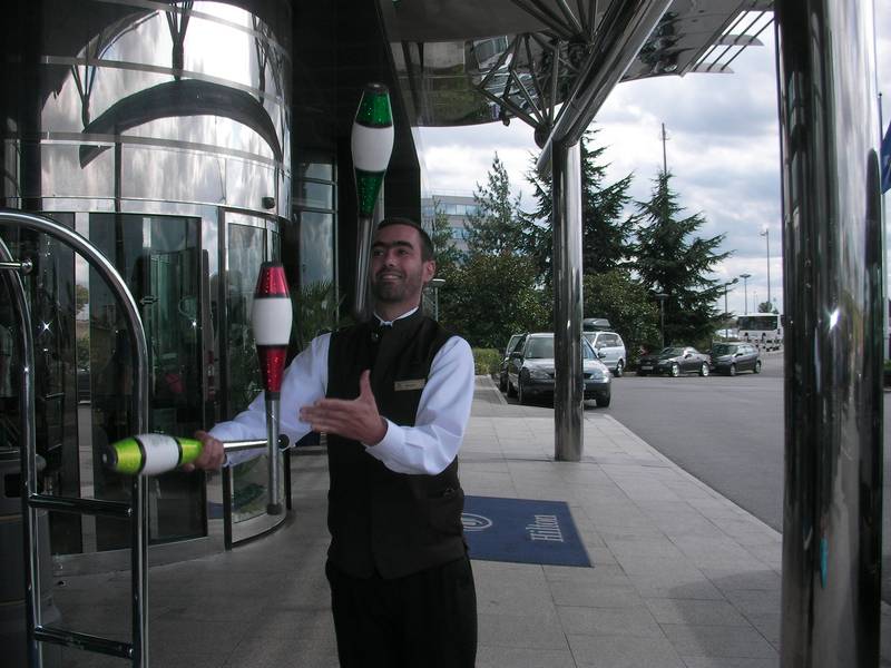 クラブを渡すとかなりきれいなジャグリングをはじめた。