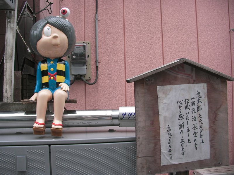 電通大までの通りをちょっと裏道を歩いたら鬼太郎と出会った。