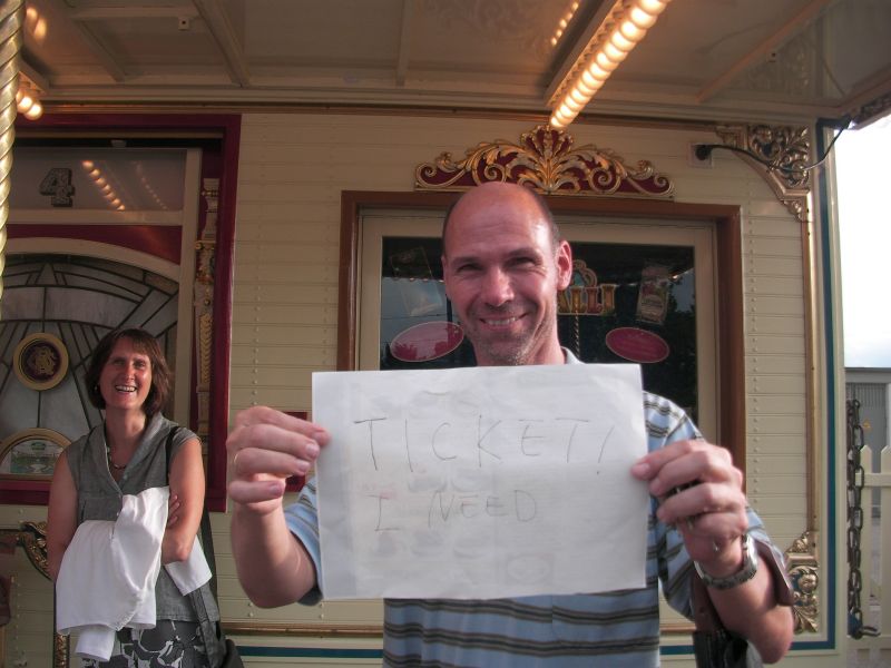 というわけで世界中どこでも通用する?紙に「I NEED TICKET!」と書いて作戦開始。