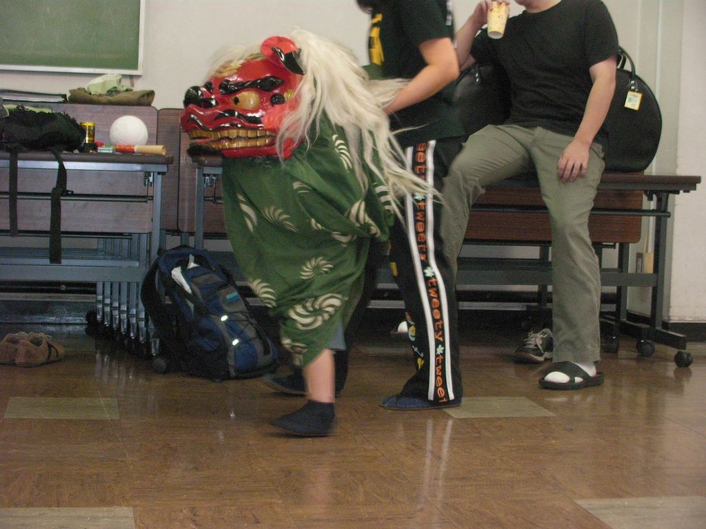 部分部分の動きとして難しいのはバチの尻をつかんで下に垂らすところくらい。でも全編がマイムといってもよい動きなので、まともに見えるようになるためには、かなりの練習が必要、、、ってちょっとやってはうまくいかないのでこの部分練習さぼっていたのですけどね(^^;) もう一回教えていただいて先は長いことを再確認 Orz