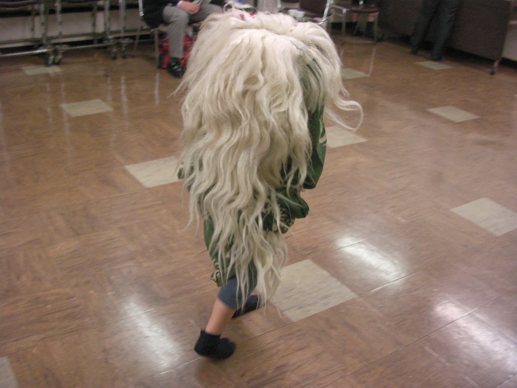 子舞に興味津々。獅子頭をかぶって遊ぶ姿がめちゃくちゃかわいい。