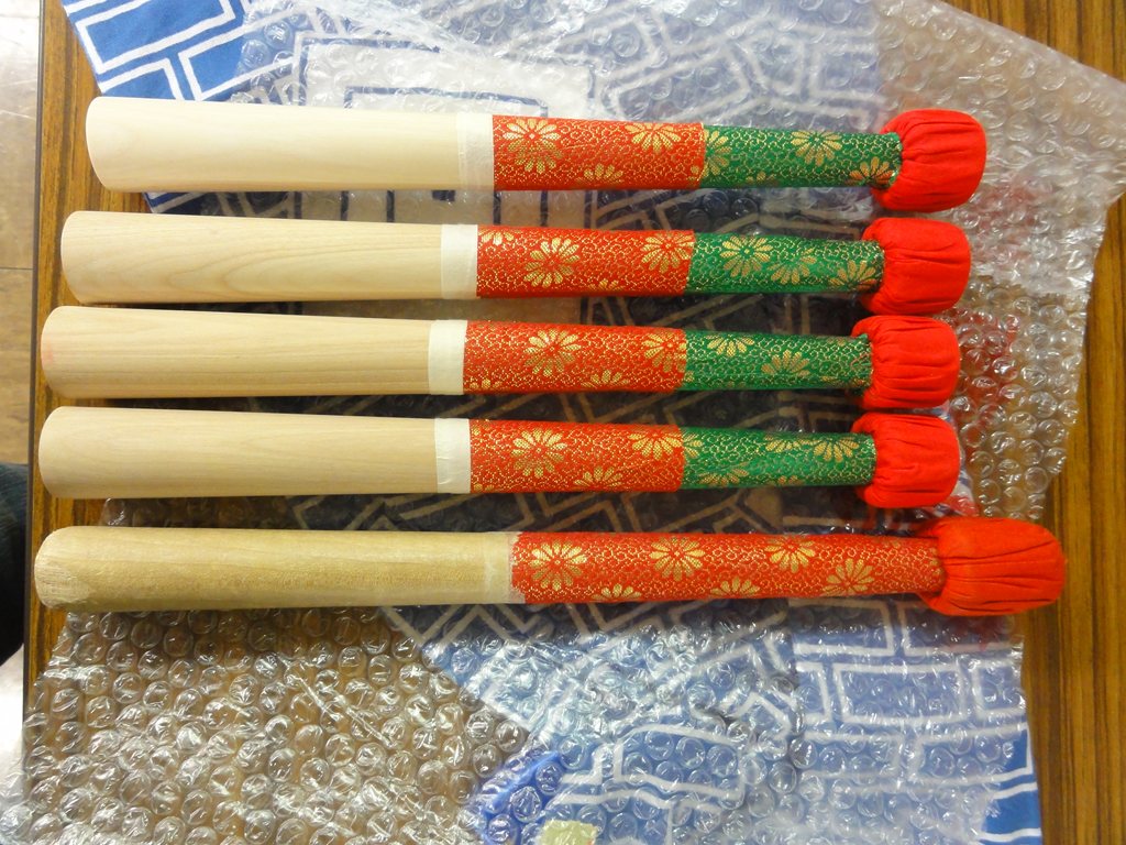 その後もう1本のバチを後ろから持ってきてくっついていたバチを下におろす。下ろすと