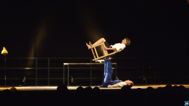 おじさんにじゃまされたおばさんはやむなく逆立ち!