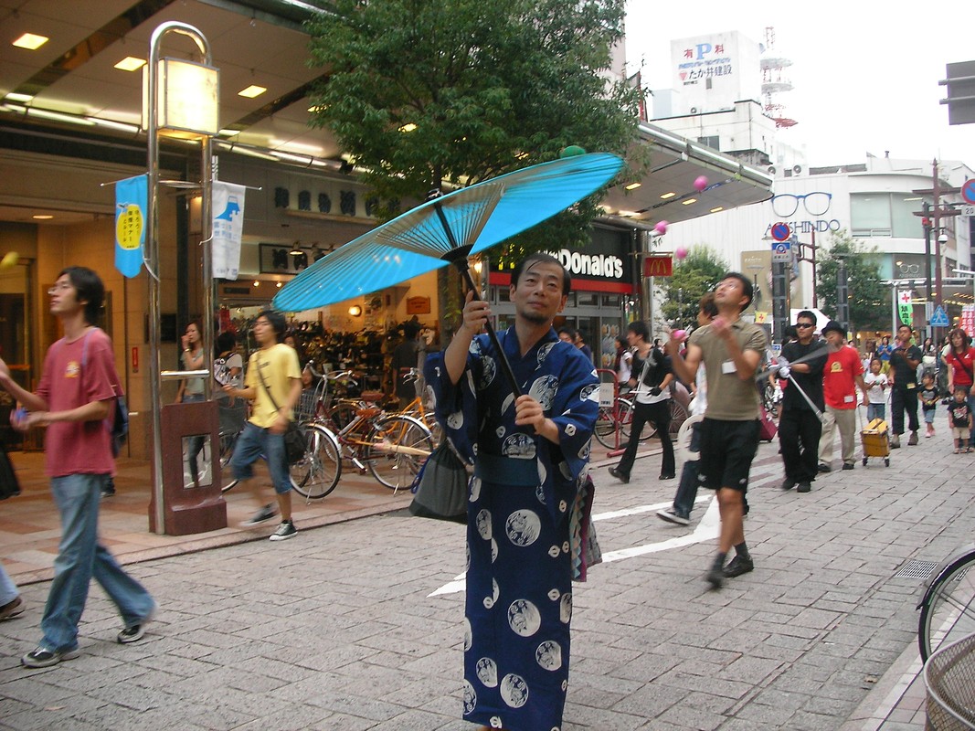 一般に和芸といわれているものとしては、傘回し、くわえ撥、一つ鞠、曲独楽、